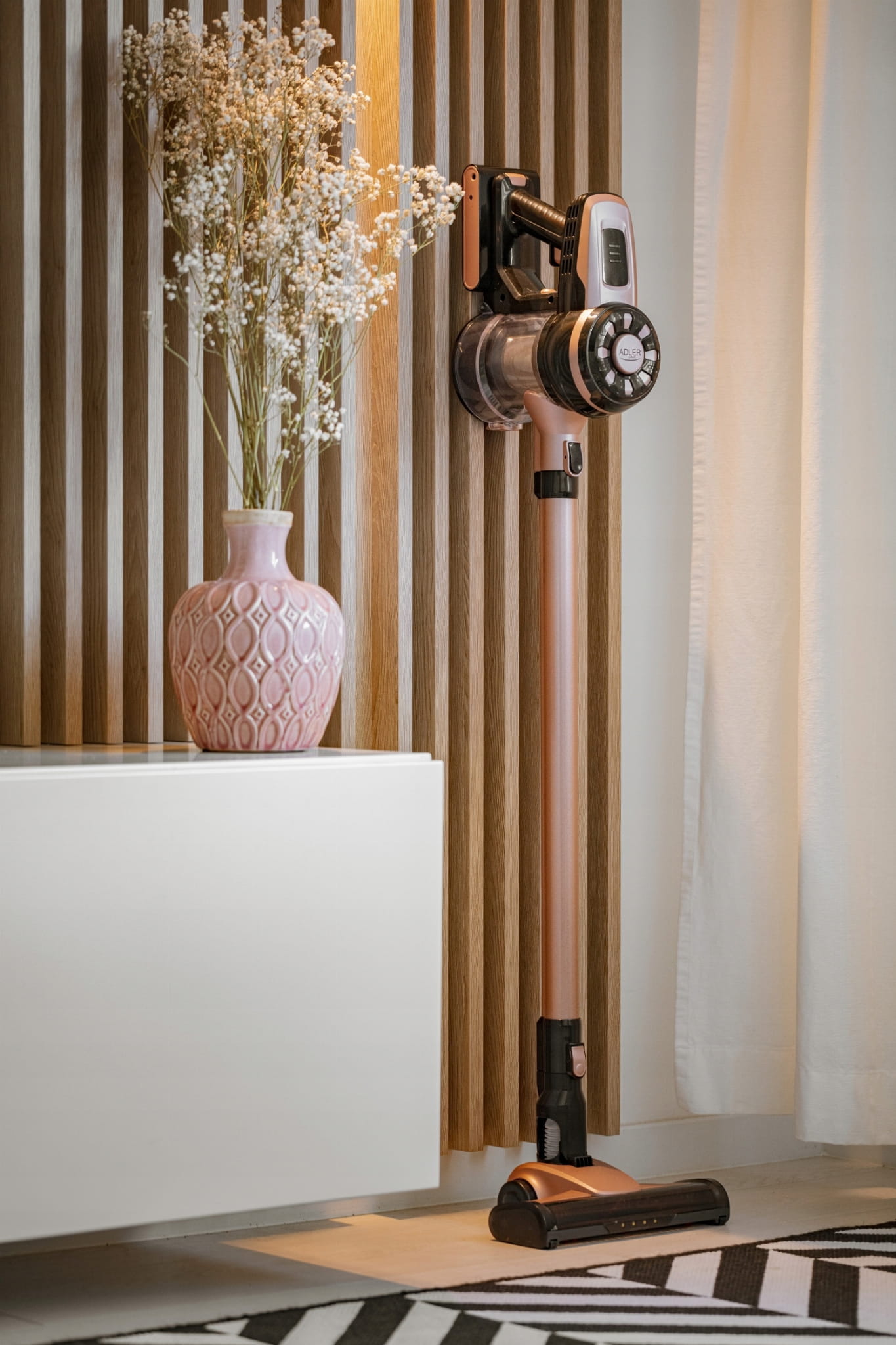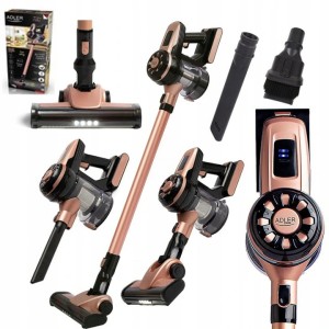 Odkurzacz pionowy bezworkowy Adler AD 7044 dzięki mocy ssania do 12000 Pa i trybowi TURBO skutecznie usuwa kurz z dywanów i tapicerki. Bezprzewodowa konstrukcja oraz czas pracy do 40 minut zapewniają swobodne sprzątanie całego mieszkania bez szukania gniazdka. W komplecie otrzymasz praktyczny uchwyt ścienny z poziomicą oraz trzy funkcjonalne nakładki do każdego rodzaju powierzchni.