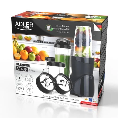 Blender - Zestaw do Smoothie Adler AD 4084 - szybkie i zdrowe koktajle na co dzieńBlender Adler AD 4084 z wyjątkowo mocnym silnikiem i kompletnym zestawem bidonów to idealne urządzenie do przygotowania pysznych smoothie i koktajli. Dzięki funkcji pulsacyjnej i ochronie przed przegrzaniem zapewnia pełną kontrolę i bezpieczeństwo użytkowania, a jego elegancki design pasuje do każdej kuchni. Zestaw zawiera: