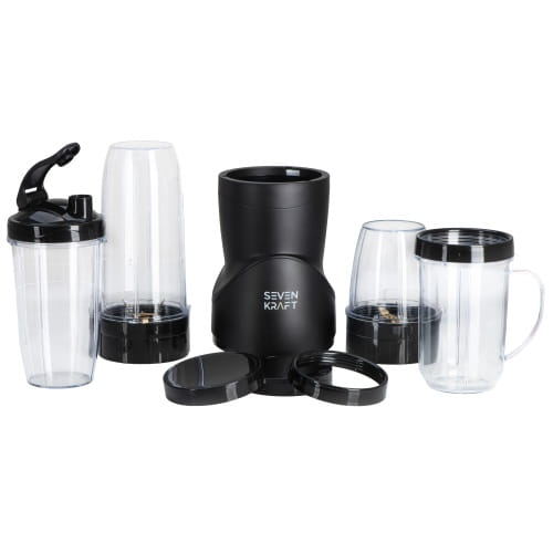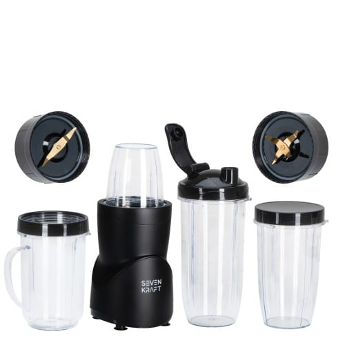 Blend & Go Smoothie Set – Blender Przenośny Sportowy - Noże Tytanowe, 4 Bidony 300–700 ml - Smoothie w 10 sekund na cały dzieńSevenKraft SK 4090 Blend & Go Smoothie Set został zaprojektowany dla aktywnych osób, które chcą odżywiać się zdrowo bez straty czasu. Dzięki funkcji Twist & Go przygotowanie smoothie zajmuje zaledwie 10 sekund – wystarczy przekręcić bidon i rozpocząć blendowanie. Mocny silnik oraz noże pokryte tytanową powłoką zapewniają szybkie i dokładne miksowanie owoców, warzyw, lodu i suchych składników. Zestaw zawiera: