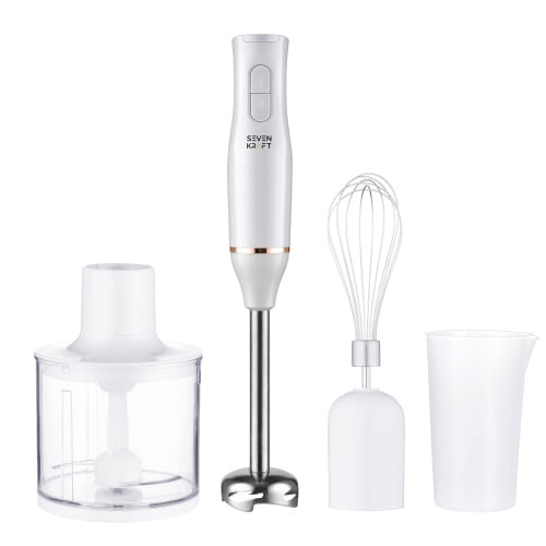 Blender ręczny Sevenkraft SK 4632 - wielofunkcyjny zestaw 4w1 do szybkiego przygotowania potrawBlender ręczny Sevenkraft SK 4632 z maksymalną mocą 800 W i ostrzami ze stali nierdzewnej ułatwia codzienne gotowanie. Dzięki praktycznym akcesoriom w zestawie pozwala szybko przygotować kremowe zupy, gładkie sosy, odżywcze smoothie, a nawet lekką pianę. Dwa poziomy prędkości i kompaktowa konstrukcja zapewniają wygodę użytkowania w każdej kuchni. Zestaw zawiera: