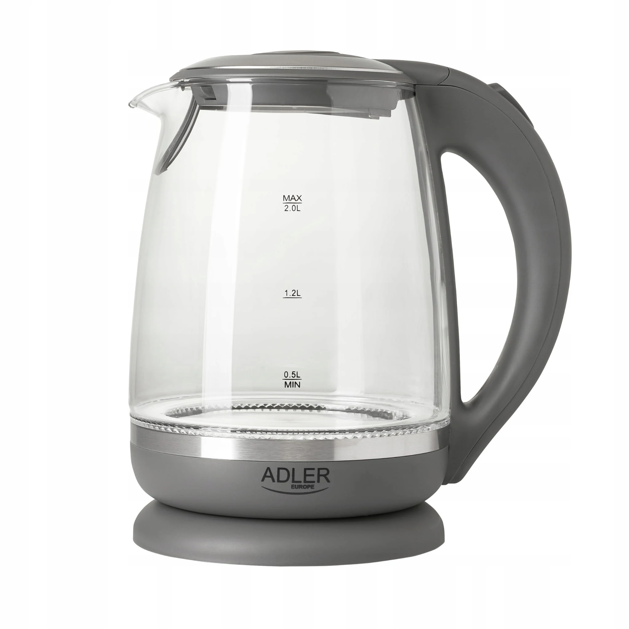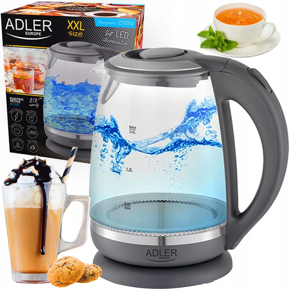 Adler Europe AD 1286 - Elegancki i pojemny czajnik dla całej rodziny!Adler Europe AD 1286 to stylowy i niezwykle funkcjonalny czajnik szklany, który doskonale sprawdzi się w każdym domu. Dzięki pojemności aż 2,0 litra w mgnieniu oka zagotujesz wodę na herbatę lub kawę nawet dla 10 osób! Automatyczne wyłączanie i zabezpieczenie przed włączeniem bez wody gwarantują pełne bezpieczeństwo, a płaska grzałka ze stali szlachetnej zapewnia szybkie gotowanie i łatwość czyszczenia. Obrotowa podstawa 360° oferuje niespotykaną wygodę użytkowania. Zestaw zawiera: