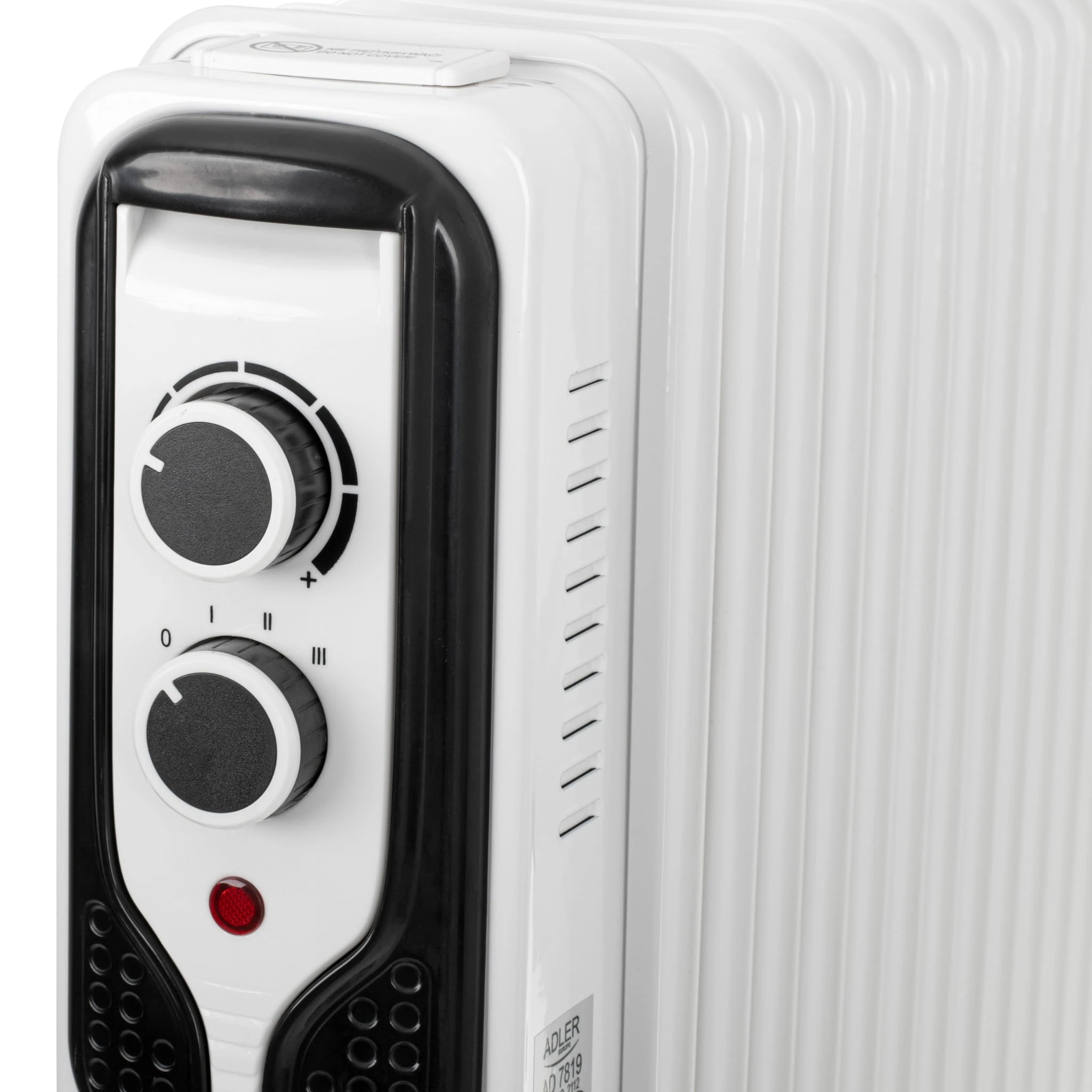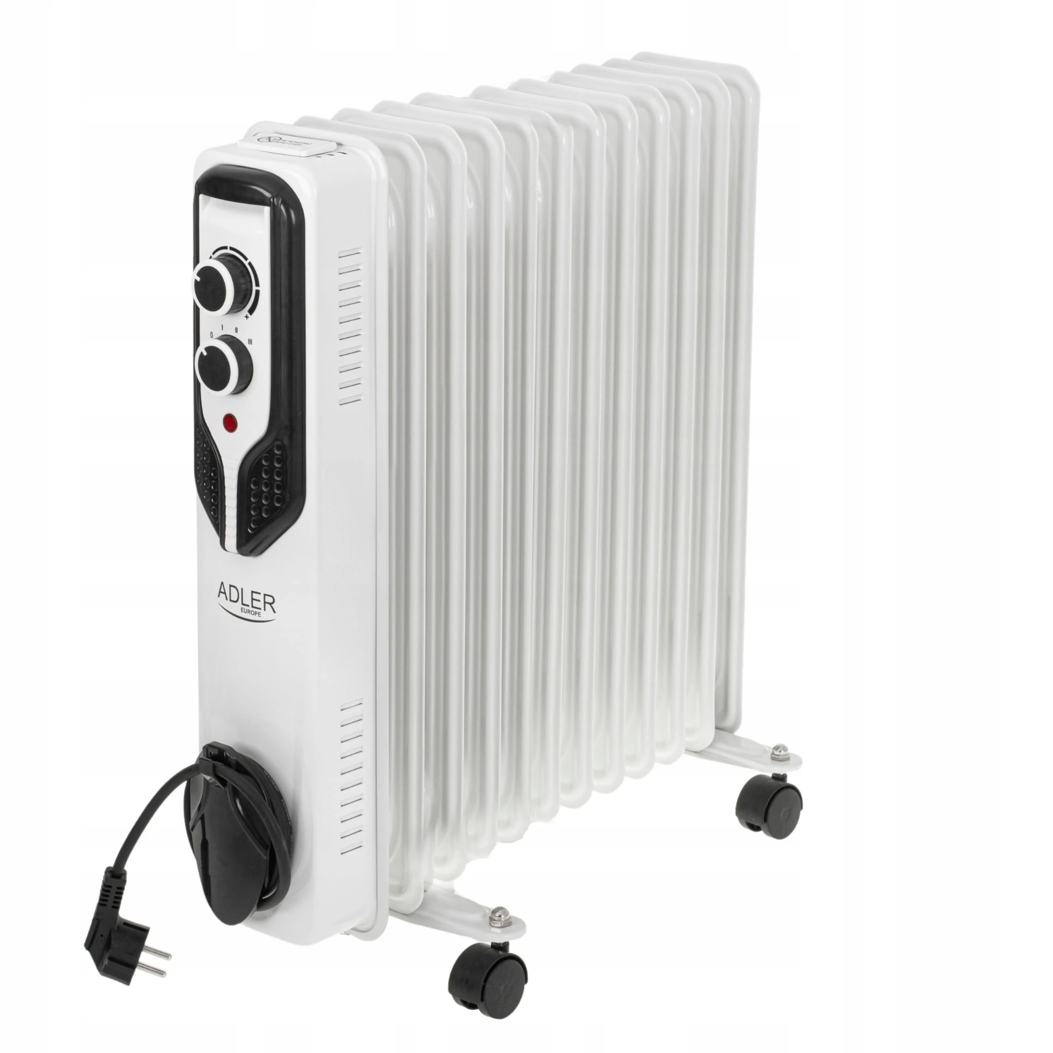 Adler AD 7817 Grzejnik olejowy - Nie dopuść do zimna – ciesz się ciepłem przez cały sezon!Wydajny grzejnik olejowy Adler AD 7817 to niezawodne rozwiązanie, gdy potrzebujesz skutecznego dogrzania pomieszczenia. Elegancka linia sprawia, że doskonale sprawdzi się zarówno w domu, jak i w biurze. Dzięki 3 poziomom mocy (1000W/1500W/2500W) i płynnej regulacji temperatury urządzenie automatycznie dostosuje pobór mocy do Twoich potrzeb, zapewniając komfort i oszczędność energii. Zabezpieczenie przed przegrzaniem gwarantuje bezpieczne użytkowanie. Zestaw zawiera: