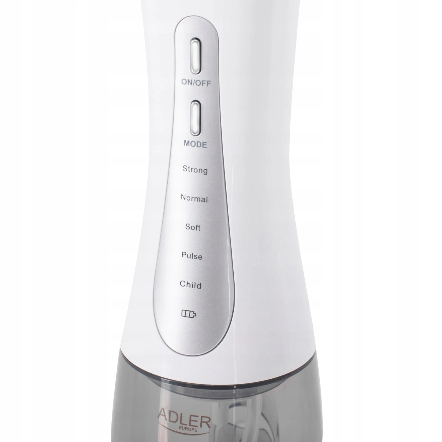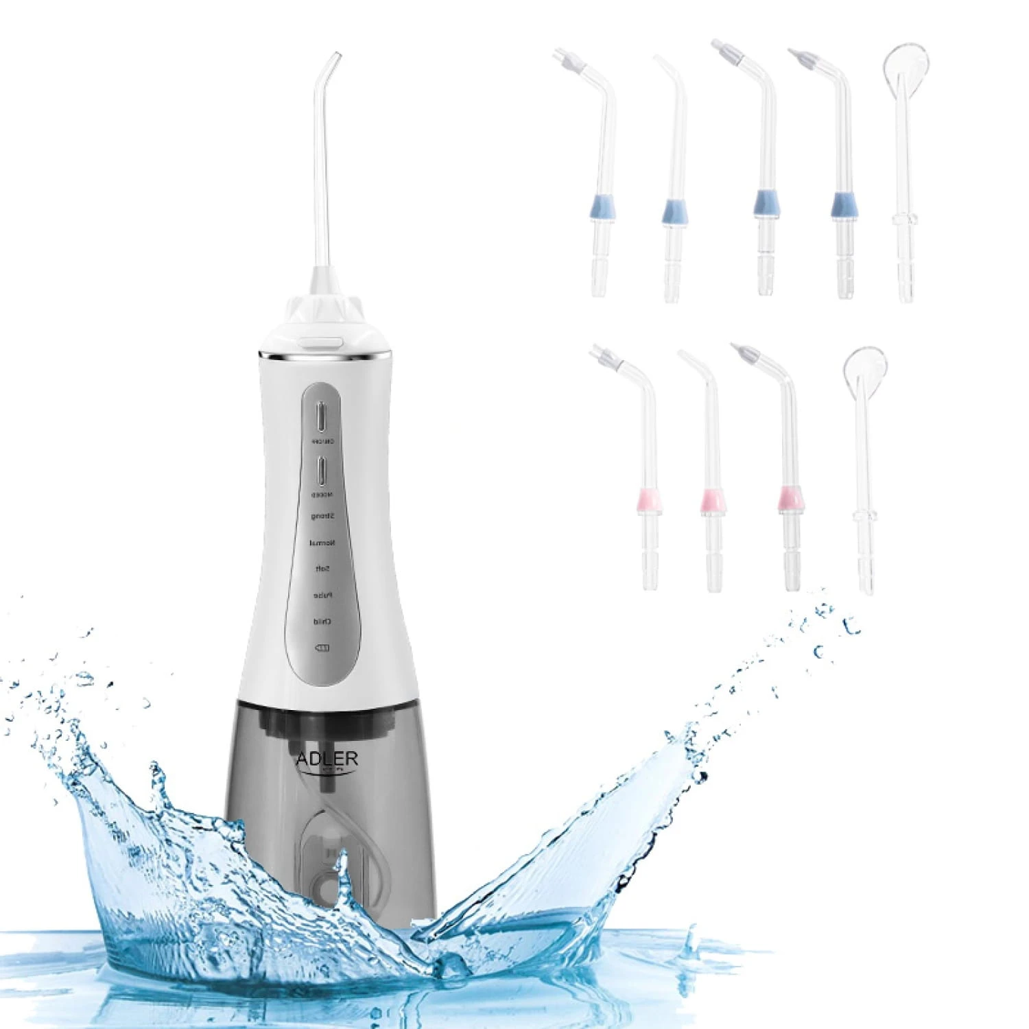 Irygator do Zębów Bezprzewodowy Adler AD 2185 - Kompletny zestaw z 10 końcówkami do kompleksowej higieny jamy ustnejIrygator Adler AD 2185 to skuteczne uzupełnienie codziennej higieny, które pomaga usuwać zanieczyszczenia z trudno dostępnych miejsc. Dzięki 5 trybom czyszczenia o ciśnieniu 30–150 PSI oraz bezprzewodowej konstrukcji z ładowaniem USB-C, zapewnia dokładne i komfortowe czyszczenie dopasowane do potrzeb każdego użytkownika, także w podróży. Zestaw zawiera: