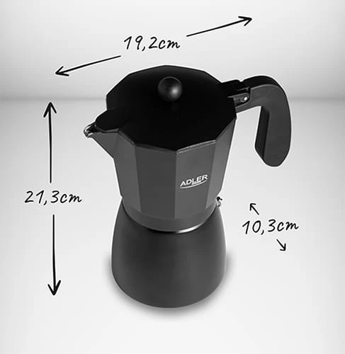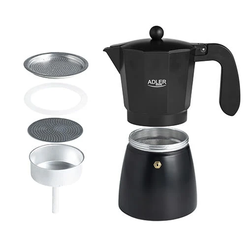 Adler AD 4420 Kawiarka espresso - Spełnij marzenie o prawdziwym włoskim espresso w swoim domu!Kawiarka Adler AD 4420 to klucz do intensywnego smaku i głębokiego aromatu mocnego espresso, które zachwyci każdego miłośnika kawy. Dzięki łatwej obsłudze i uniwersalności, sprawdzi się zarówno w domowej kuchni, jak i w podróży. Termoizolowany uchwyt gwarantuje bezpieczne użytkowanie, a kompaktowy rozmiar pozwala zabrać ją ze sobą wszędzie. Przygotuj do 9 filiżanek pysznej kawy naraz, używając jej na każdej kuchence! Zestaw zawiera: