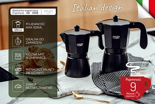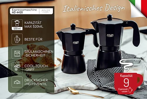 Kawiarka espresso do 9 filiżanek - 520 ml na wszystkie kuchenki AD 4420