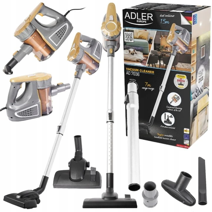 Adler AD 7036 - Odkurzaj bez wysiłku! Moc i zasięg w lekkim i poręcznym urządzeniu!Adler AD 7036 to bezworkowy odkurzacz ręczny, który zapewni Ci wygodne i skuteczne sprzątanie w domu, biurze i samochodzie. Dzięki mocy 800 W i zasięgowi pracy do 6 metrów z łatwością odkurzysz każde pomieszczenie bez ciągłego szukania gniazdka. Jego lekka i poręczna konstrukcja oraz wygodny uchwyt sprawiają, że przenoszenie go jest niezwykle proste. Ponadto, plastikowy pojemnik na kurz o pojemności 1,5 litra jest przystosowany do czyszczenia wodą, co ułatwia utrzymanie urządzenia w czystości. Zestaw zawiera: