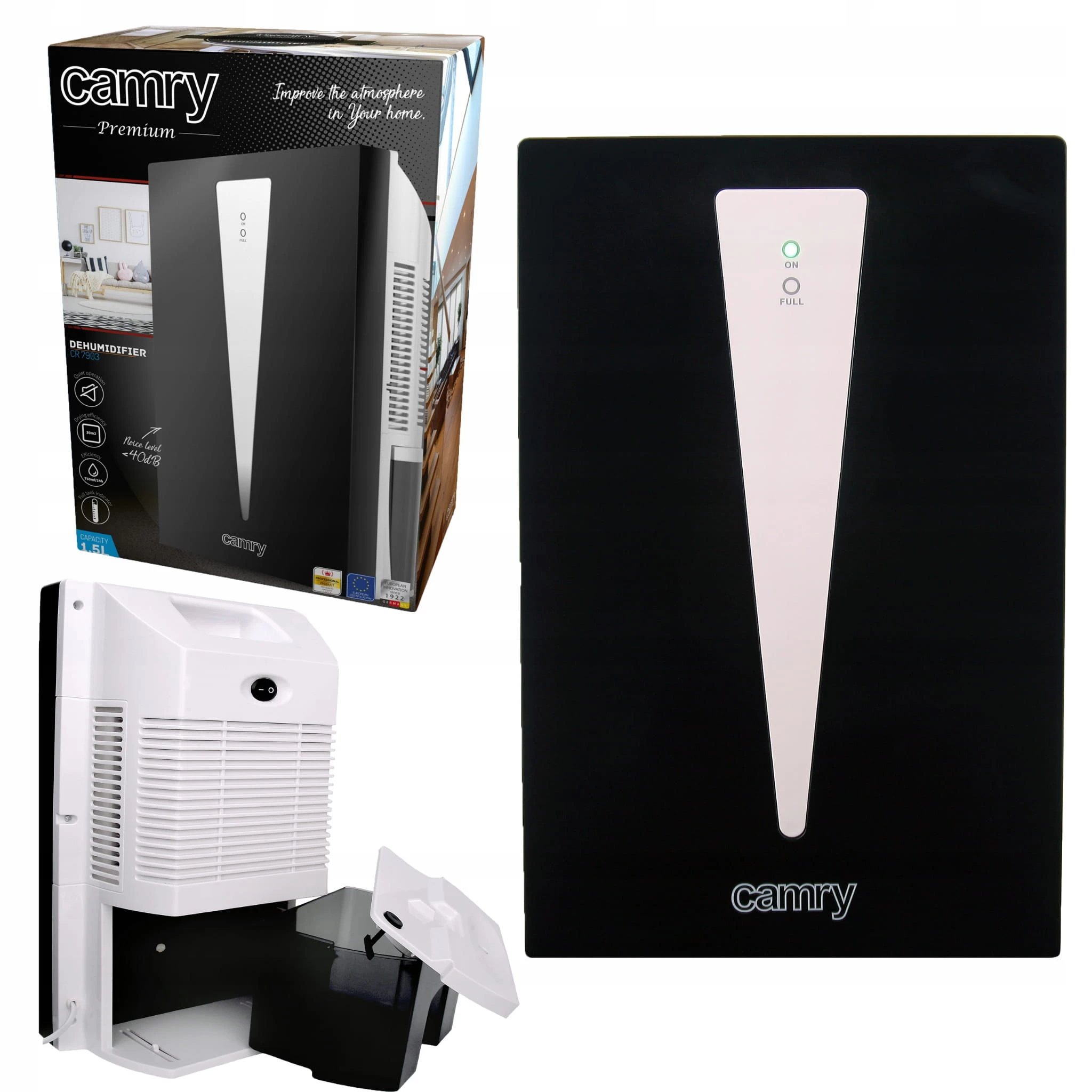 Osuszacz powietrza Camry CR 7903 - Pozbądź się wilgoci raz na zawsze – ciesz się zdrowym i świeżym powietrzem!Osuszacz powietrza Camry CR 7903 to praktyczne rozwiązanie dla pomieszczeń do 30 m², w których chcesz wyeliminować nadmierną wilgotność, pleśń i zarazki. Działa w oparciu o cichą technologię termoelektryczną (ogniwo Peltiera), osuszając do 750 ml/24h. Dzięki automatycznemu wyłączaniu i wskaźnikowi pełnego zbiornika, możesz być spokojny o jego bezpieczną i bezobsługową pracę. Zestaw zawiera: