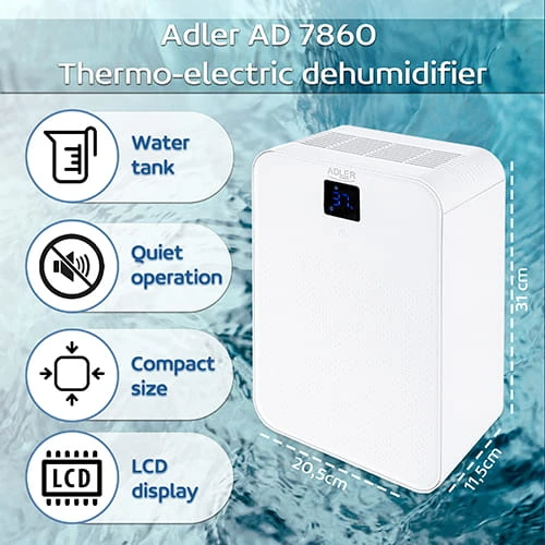 Osuszacz powietrza do łazienki z czujnikiem wilgotności i trybem nocnym AD 7860